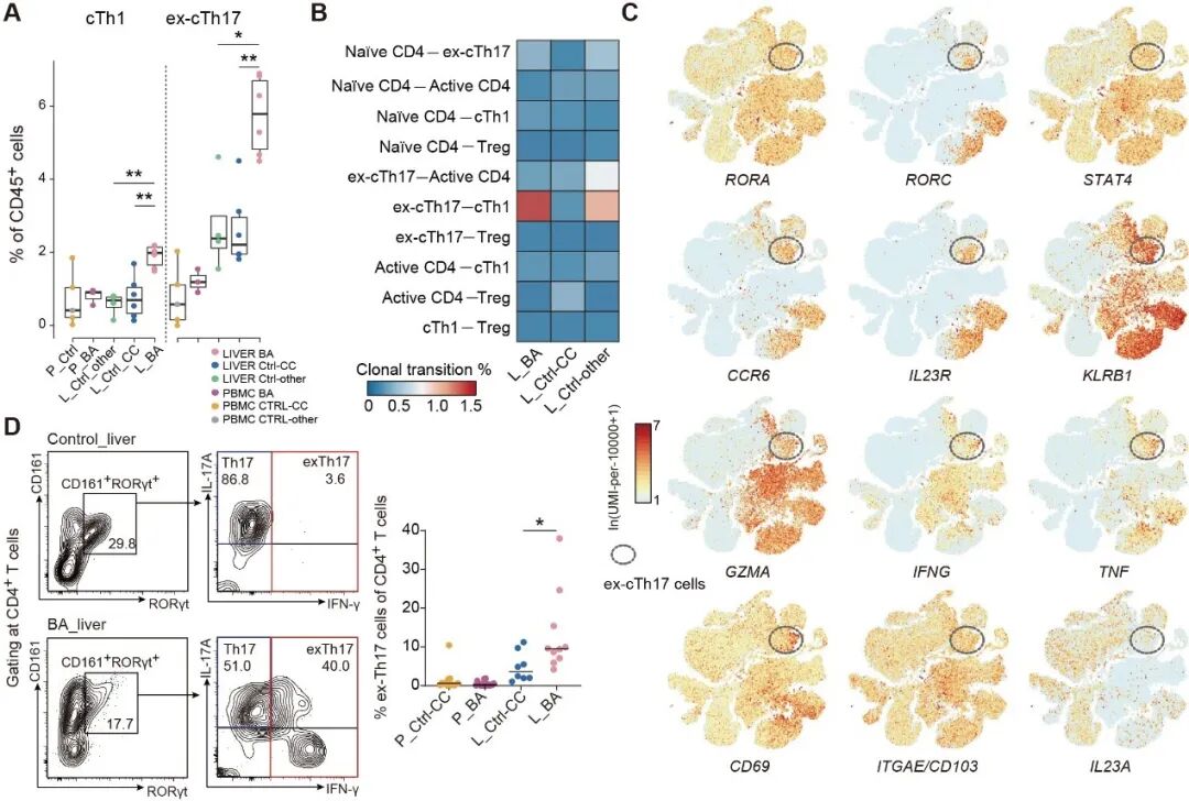 图1:BA患儿肝脏微环境的改变会促进Th17-Th1的转分化