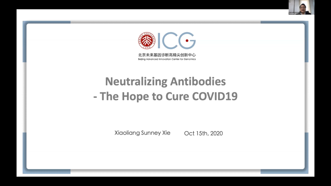北京大学谢晓亮教授介绍了其课题组以及合作团队所发现的新型冠状病毒(SARS-CoV-2)中和抗体的最新研究进展,其研究成果有望为新冠的治疗和预防提供强效药。利用高通量单细胞RNA和VDJ测序技术,谢晓亮领衔多个合作课题组从60个新冠康复期病人的B细胞中鉴定出20多种高效的中和抗体,其中最有效的一种是编号为BD-368-2的抗体。BD-368-2在新冠病毒感染的hACE2转基因小鼠中显示了出高效的治疗和预防功能,同时也在表现重症肺炎的仓鼠模型中也展现出良好疗效。此外,合作团队利用冷冻电镜(Cryo EM)得到了新冠病毒Spike蛋白三聚体与BD-368-2的高分辨率三维结构,揭示了BD-368-2可以通过同时占据所有三个受体结合域(RBD)来完全阻断ACE2识别。而且,BD-368-2的表位完全避免了VH3-53 / VH3-66复发性中和抗体的结合位点。BD-368-2与其复发性中和抗体配对后可以避免突变诱导的中和逃逸。谢教授表示目前该中和抗体和抗体对已在北京丹序药业有限公司的协调下与百济神州开展临床试验,有望在不久的将来为抗争新冠疫情提供有效的预防和治疗药物。