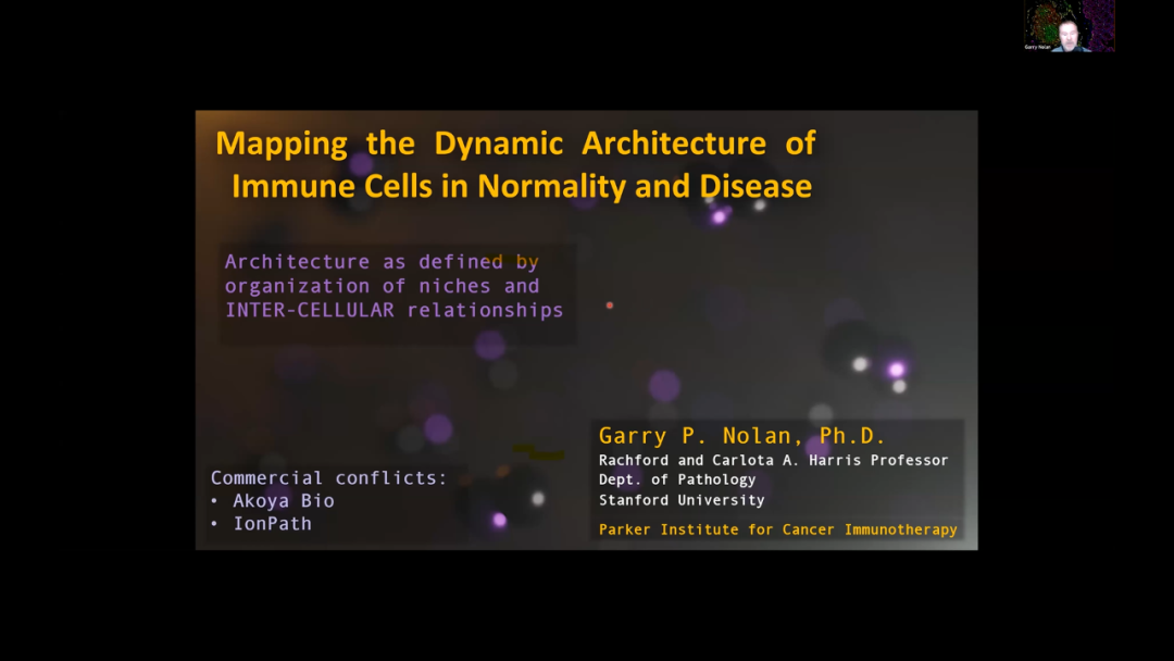 来自斯坦福大学的Garry P. Nolan介绍了细胞蛋白成像技术CODEX2和MIBI,及其在疾病治疗中的应用。CODEX2技术是通过在50-120种与细胞表面蛋白结合的抗体后面连接一段特异的核苷酸序列,之后利用带有荧光分子的互补寡核苷酸与其杂交并通过CODEX INSRUMENT进行成像,整个过程可通过反复进行多轮解链退火检测多种细胞表面蛋白。该技术发现不同组织器官具有特殊的的细胞类型排列方式,根据近邻细胞类型构建距离树有助于解释组织功能。此外通过定义肿瘤细胞和免疫抑制细胞相对与效应细胞的空间距离比值,可以实现对T细胞淋巴瘤的治疗药物的预后诊断。CORTEX对于研究新冠病毒在不同组织引发的反应也有重要作用。另一个技术MIBI是利用同位素金属离子标记抗体,之后利用质谱对细胞或组织的蛋白组成进行三维成像,该技术不仅可以测量单个细胞的蛋白质水平也同时提供个细胞形态和位置的信息,并且有望结合RNAseq实现更多的功能。