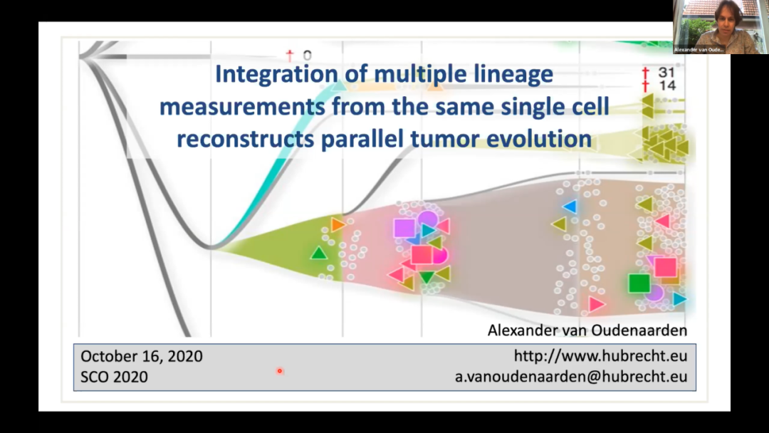 来自Hubrecht Institute的Alexander van Oudenaarden教授介绍了其团队利用单细胞基因组测序推测时间发育信息这一生物学问题的相关工作。利用人类结直肠癌类器官(organoids)体外培养模型,他们收集了0-25周的类器官细胞,并进行了大量细胞和单细胞测序。通过比较拷贝数的变化,以及体细胞突变和实验之初构建的慢病毒标签,Oudenaarden教授团队可以推断出类器官的具体演化过程,并观察到类器官的演化是强选择压力导致。另外,该方法可以重构致癌事件发生的先后过程,同时指明了在不同单细胞中可以独立发生相同的拷贝数变异。